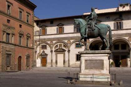 An additional twist makes this legend even more interesting. In the middle of the square, there is an equestrian sculpture of Ferdinando I de’Medici looking towards the window. Was the young lady his secret lover?