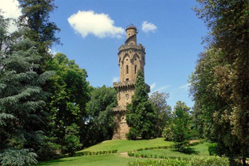 The garden design is laden with complex Masonic symbology, climaxing with an elegant neo-Gothic tower spiralling to the heavens. Almost twenty-two metres high, the tower houses a collection of astronomical instruments, a library, and a terrace for studying the sky. In the centre of a flowerbed there is a group of classic sculptures by Pio Fedi’ including a statue of Seneca, representing a young Pietro Torrigiani, and a marble column dedicated to the great botanist and mycologist, Pier Antonio Micheli.