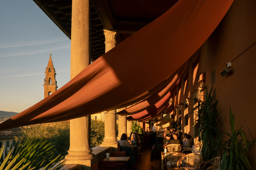 Perched on the third floor of the Hotel Palazzo Guadagni, the Loggia Roof Bar panoramic terrace overlooks Florence and its surrounding hills, offering a unique viewpoint onto the city. Enjoy an enchanting interlude from the city bustle to share a lunch, an afternoon tea or an aperitivo while admiring Santo Spirito square and the Florentine landscape stretching in front of you.